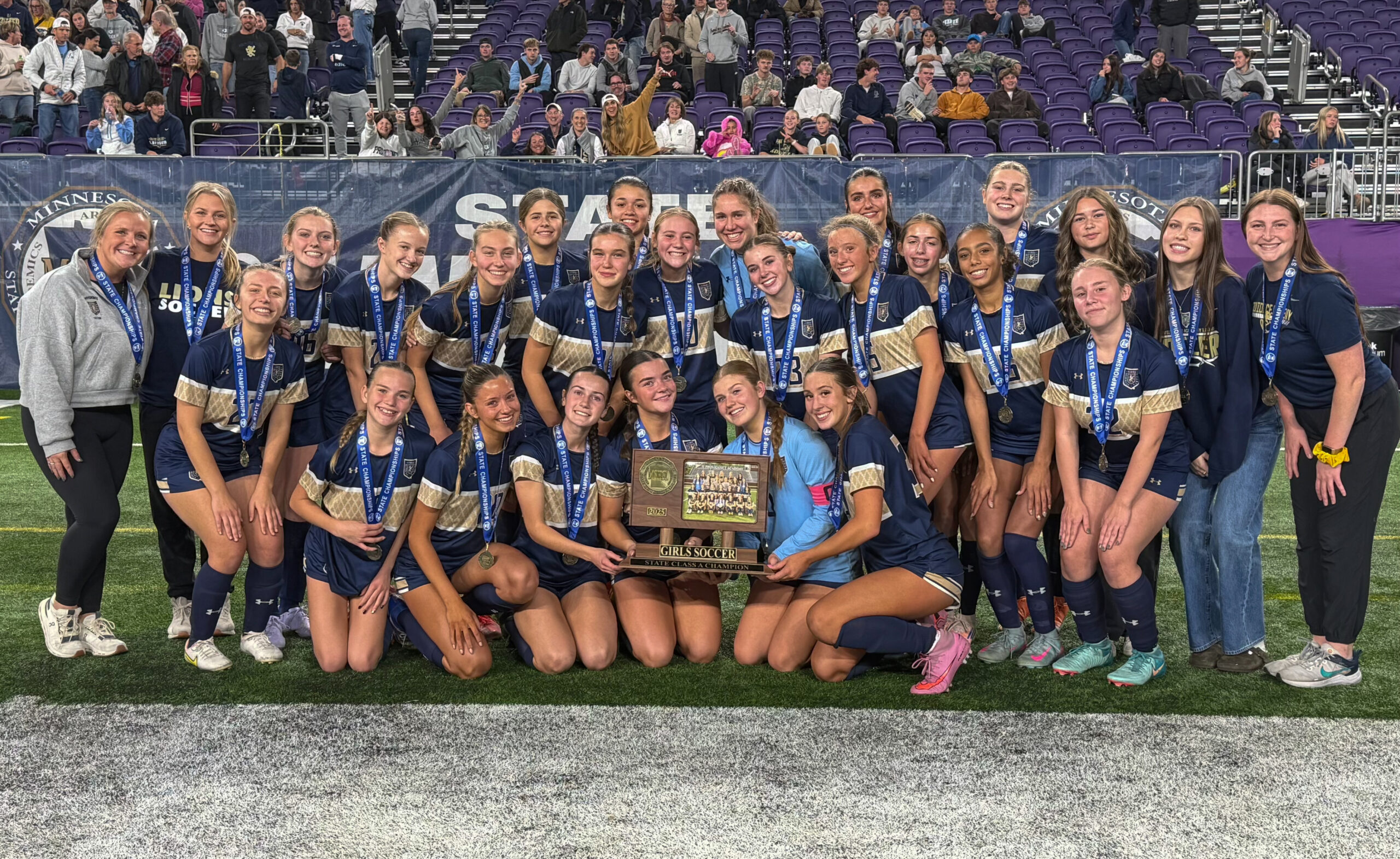 Providence Academy Girls Soccer defended their Class A State title on Friday as they defeated Watertown-Mayer in the State Championship at US Bank Stadium. The Lions finished the season with a 18-3-1 record and Coach Ellen Moran hoisted the Championship Trophy in her 1st season as Head Coach. Congratulations girls on back-to-back titles!
